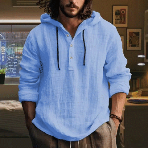 - 1*Herren Baumwoll-Leinen-Pullover mit Kapuze Langarmhemd