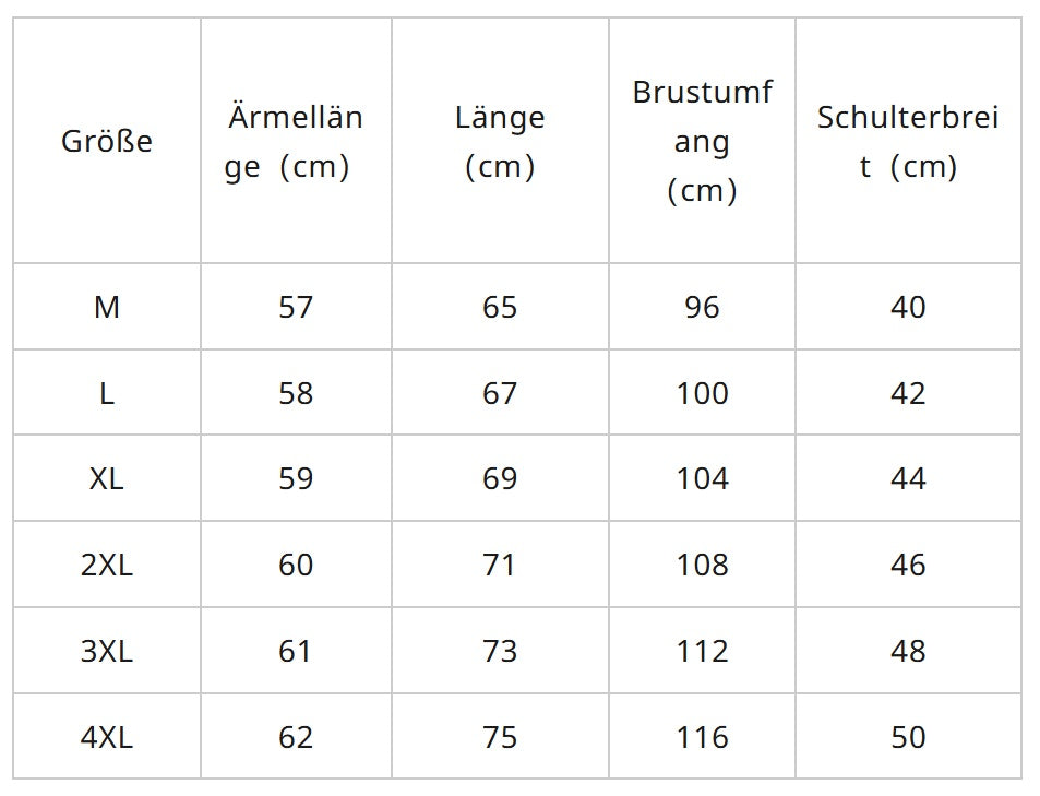- Größe: M, L, XL, 2XL, 3XL, 4XL