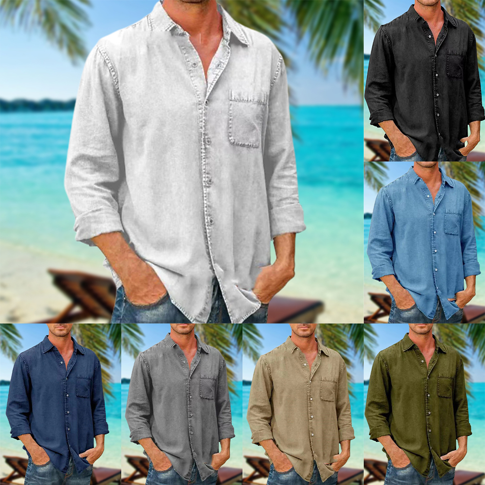 - 1*Herren Revers Tasche Einreihig Denim Hemd