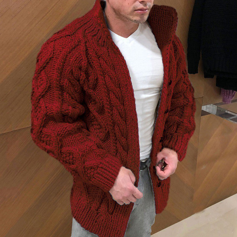 - 1*Herren Stehkragen Zopfmuster gehäkelter Pullover Cardigan