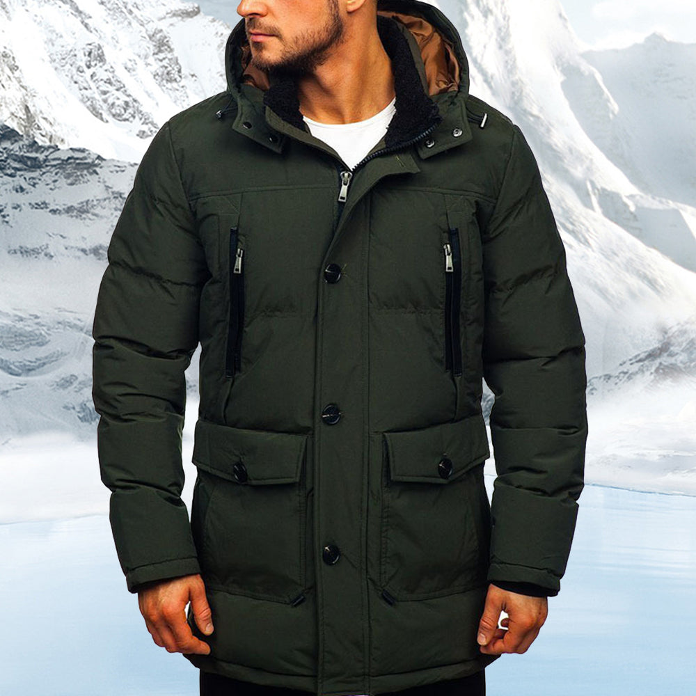 - 1 * Lässige Daunenjacke mit Kapuze aus Baumwolle für Männer
