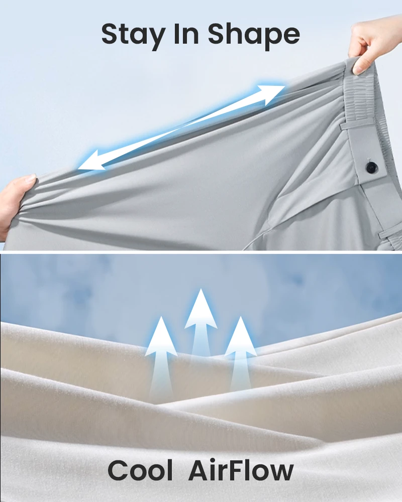 - Hervorragende Atmungsaktivität – Dank des fortschrittlichen Eisseiden-Gewebes bieten diese Hosen volle Beinbedeckung ohne Hitzestau. Sie vereinen atmungsaktives Material mit einem luxuriös weichen, kühlen Tragegefühl. Feuchtigkeit trocknet schnell, die Luftzirkulation bleibt optimal, und Sie fühlen sich von morgens bis abends frisch, trocken und komfortabel.